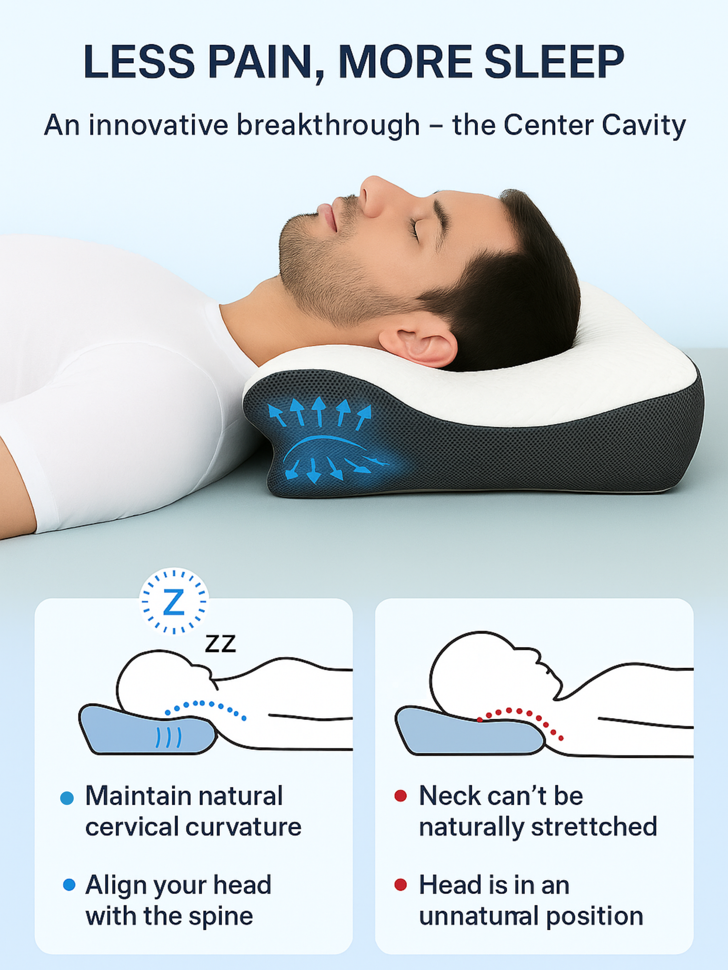 sers find relief from neck pain and stiffness due to the pillow's ergonomic design and supportive memory foam. It cradles the neck and provides gentle support, helping to alleviate discomfort.
